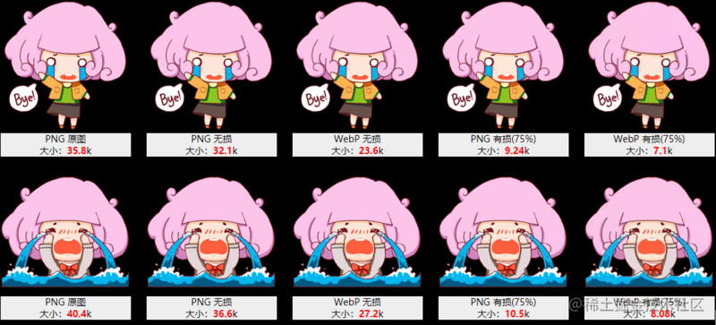 看一下 png 图片与 webp 图片的对比: