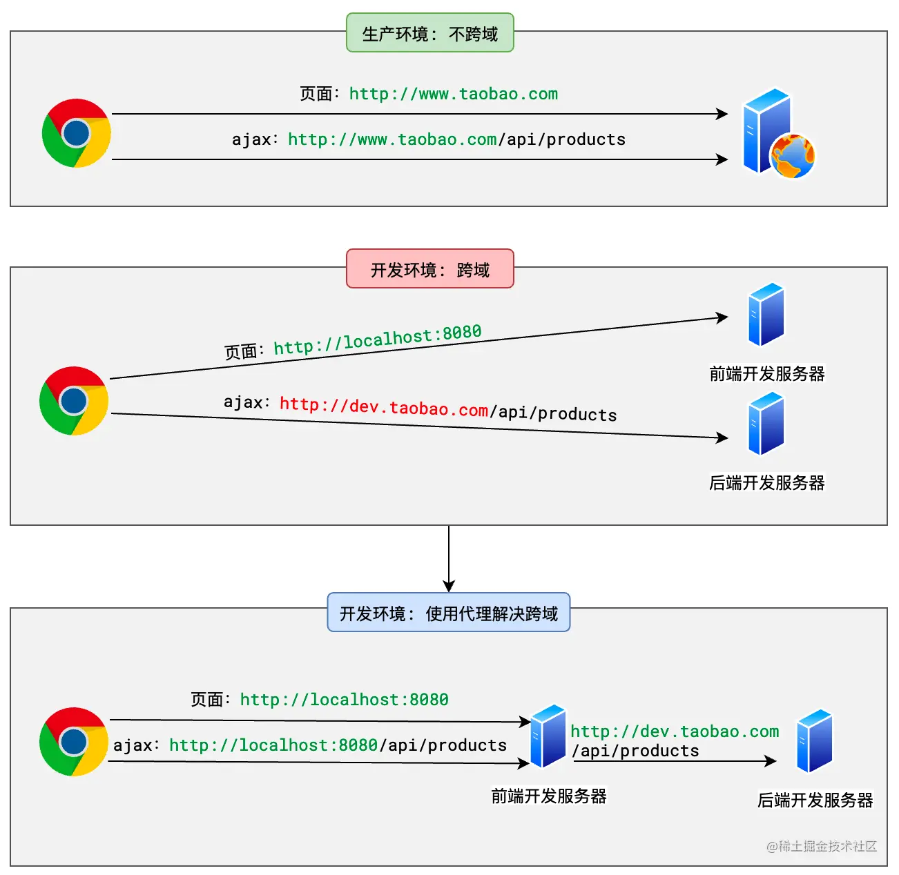 node + vue + webpack + webpack-dev-server 搭建的项目,跨域请求接口,直接修改 webpack.config.js 配置。开发环境下,vue 渲染服务和接口代理服务都是 webpack-dev-server 同一个,所以页面与代理接口之间不再跨域