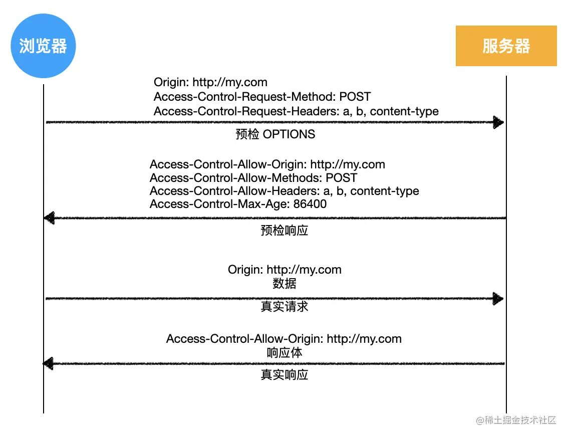 对于一个附带身份凭证的请求,若服务器没有明确告知,浏览器仍然视为跨域被拒绝。