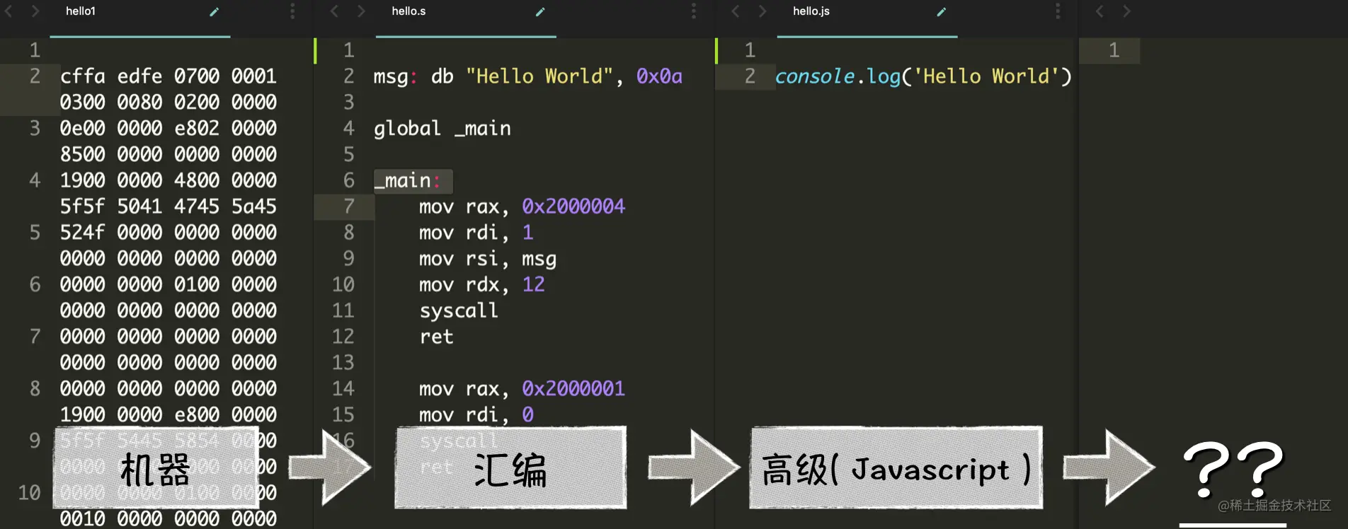 编程语言的发展其实是一个不断抽象的过程,比如从机器语言到汇编语言然后到 C 或 Ruby 这类高级语言: