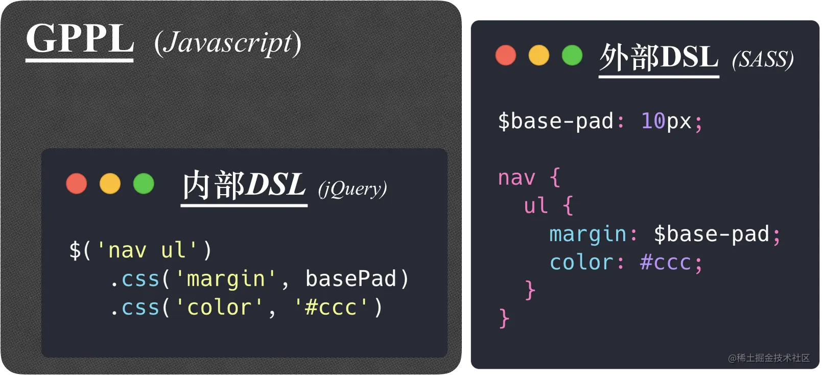 GPPL 即 「General Purpose Programming Language」,又称通用编程语言,例如我们常用的 JavaScript,它们被设计用来解决通用编程问题。